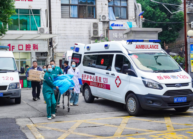 “小心,注意保护患者头部……”10月22日清晨,岳阳市中心医院东茅岭院区(老院)前坪,几名医务人员及志愿者用担架将第一个重症患者顺利安置上救护车,随后,10辆救护车依次接好对应患者。